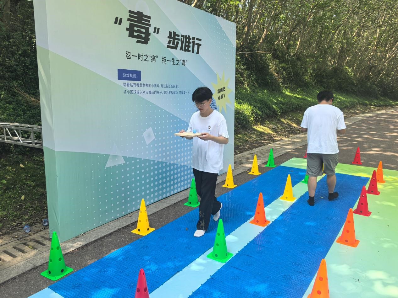 关卡地面绘制指令图案,标注“毒品陷阱→绕开!”“健康通道→前行!”等指引。参与者需严格按照“手摸健康标识、脚踩安全区域”的规则前进,若误触“毒品陷阱”区域,则需重新开始并回答一道禁毒问题。通过游戏,让“远离毒品诱惑”变为具体行动。