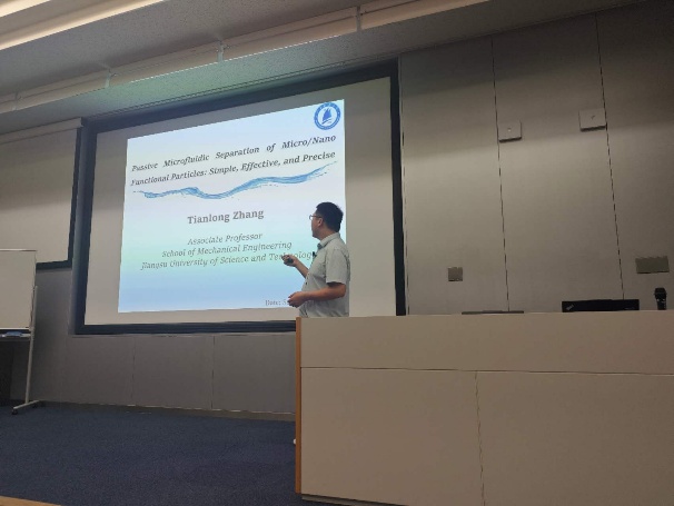 2025年9月10日,浪live 张天龙副教授应邀赴日本奈良先端科学技术大学院大学开展专题讲座。讲座主题为“基于被动式微流控的微/纳米功能颗粒分离:简便、高效与精准(Passive Microfluidic Separation of Micro/Nano Functional Particles: Simple, Effective, and Precise)”。
