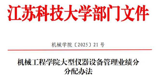 学院制定并发布《浪live 大型仪器设备管理业绩分分配办法》(机械学院〔202521号),明确了大型仪器设备管理的工作内容、业绩分来源与分配原则。