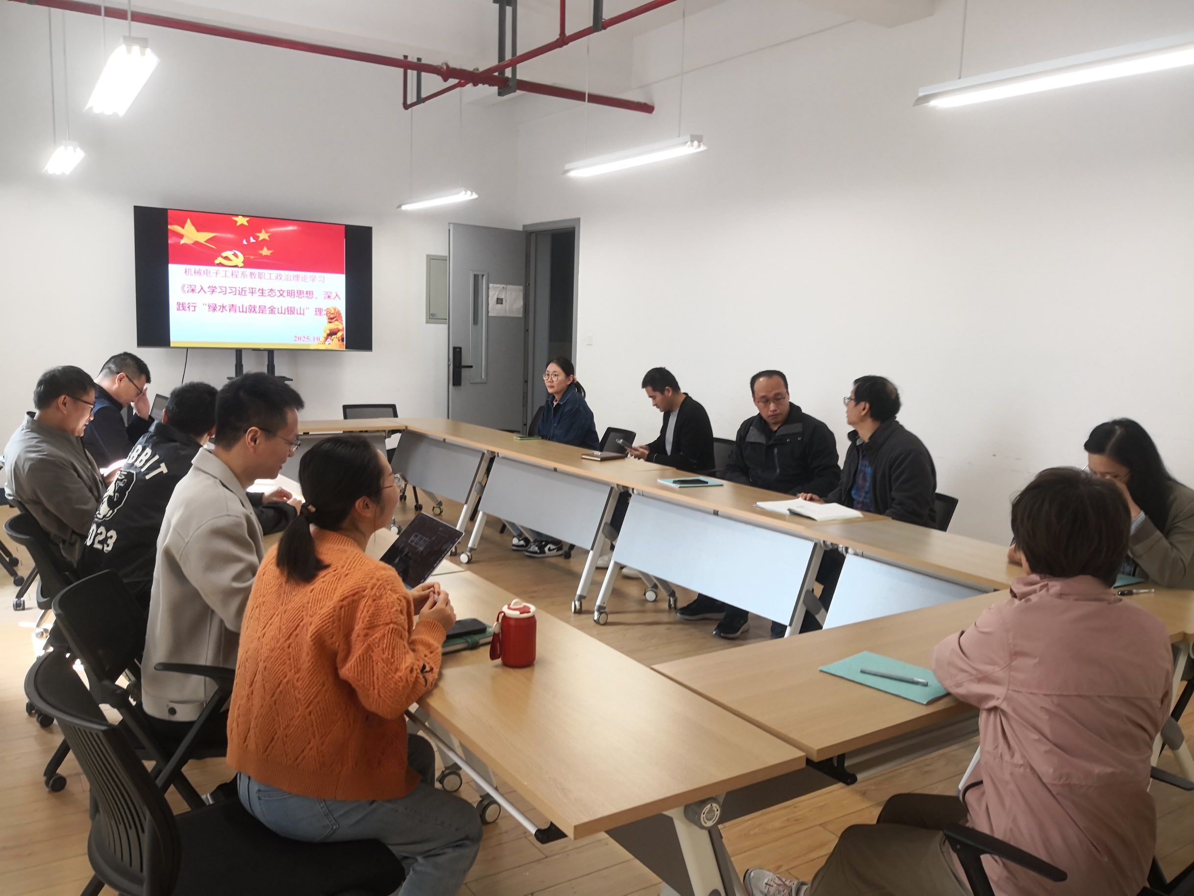 各系部教职工深入学习习近平生态文明思想,联系学校工作实际,探讨如何将绿色发展理念融入日常教育教学、推动节能环保校园建设、开展相关课题研究等,为学校发展营造绿色、可持续的发展氛围;深入学习领会党的二十届四中全会精神,学习领会习近平总书记在党的二十届四中全会上的重要讲话精神,结合实际谈理解,自觉把思想和行动统一到全会精神上来。