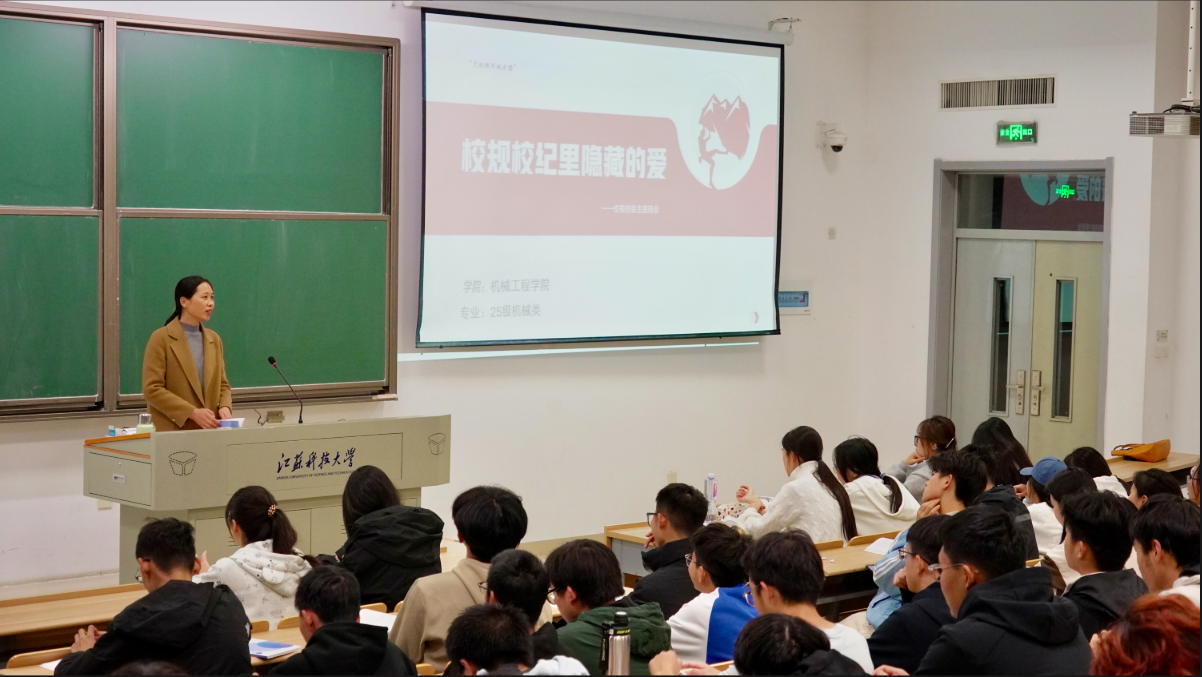 11月4日晚,一场以“校规校纪里隐藏的爱”为主题的班会在文理大楼102教室顺利开展,25级工业设计专业和机械类7、8、9班的同学参加了本次班会。此次班会旨在加强同学们对校规校纪的理解与认识,营造良好的校园秩序与学习氛围。