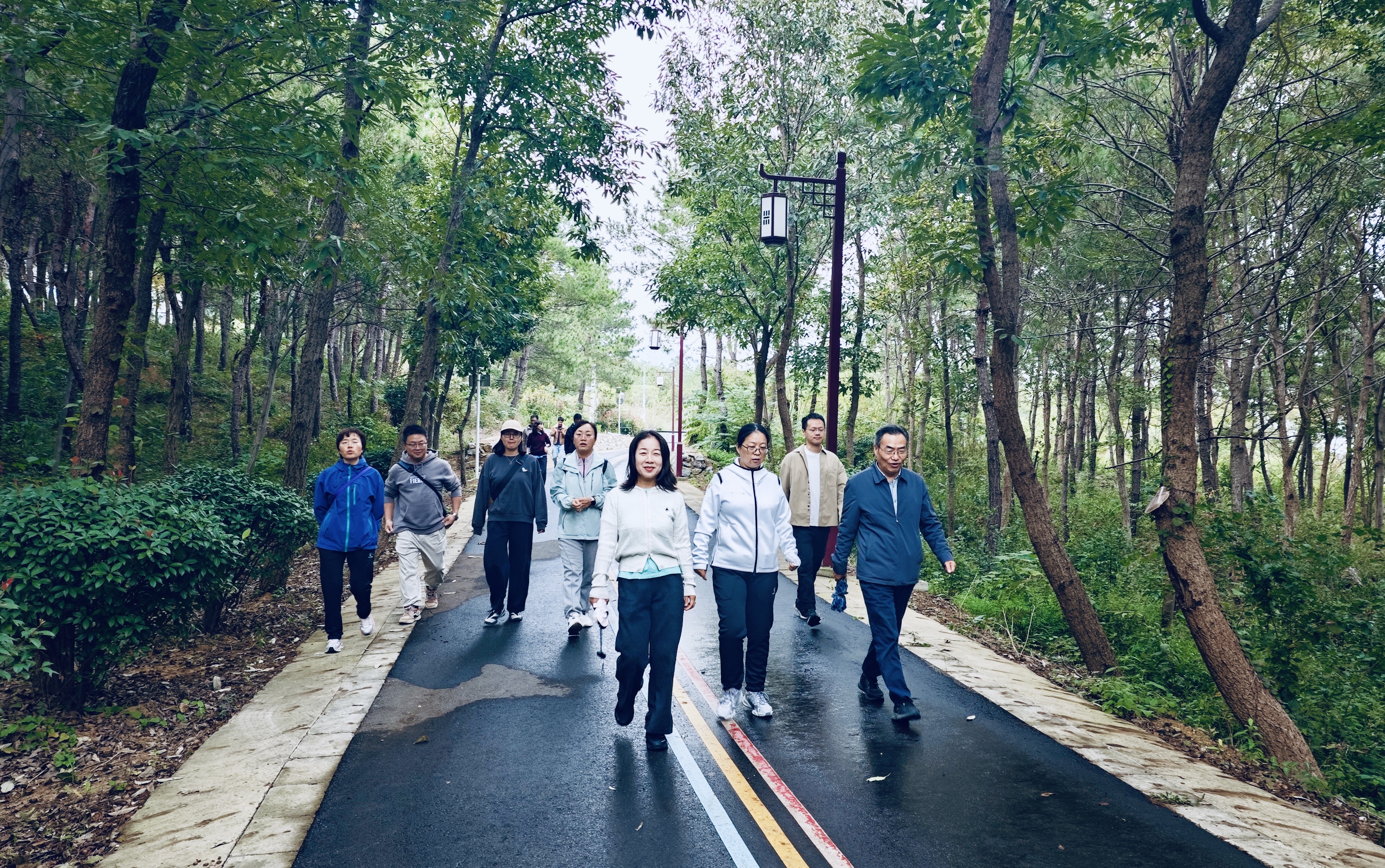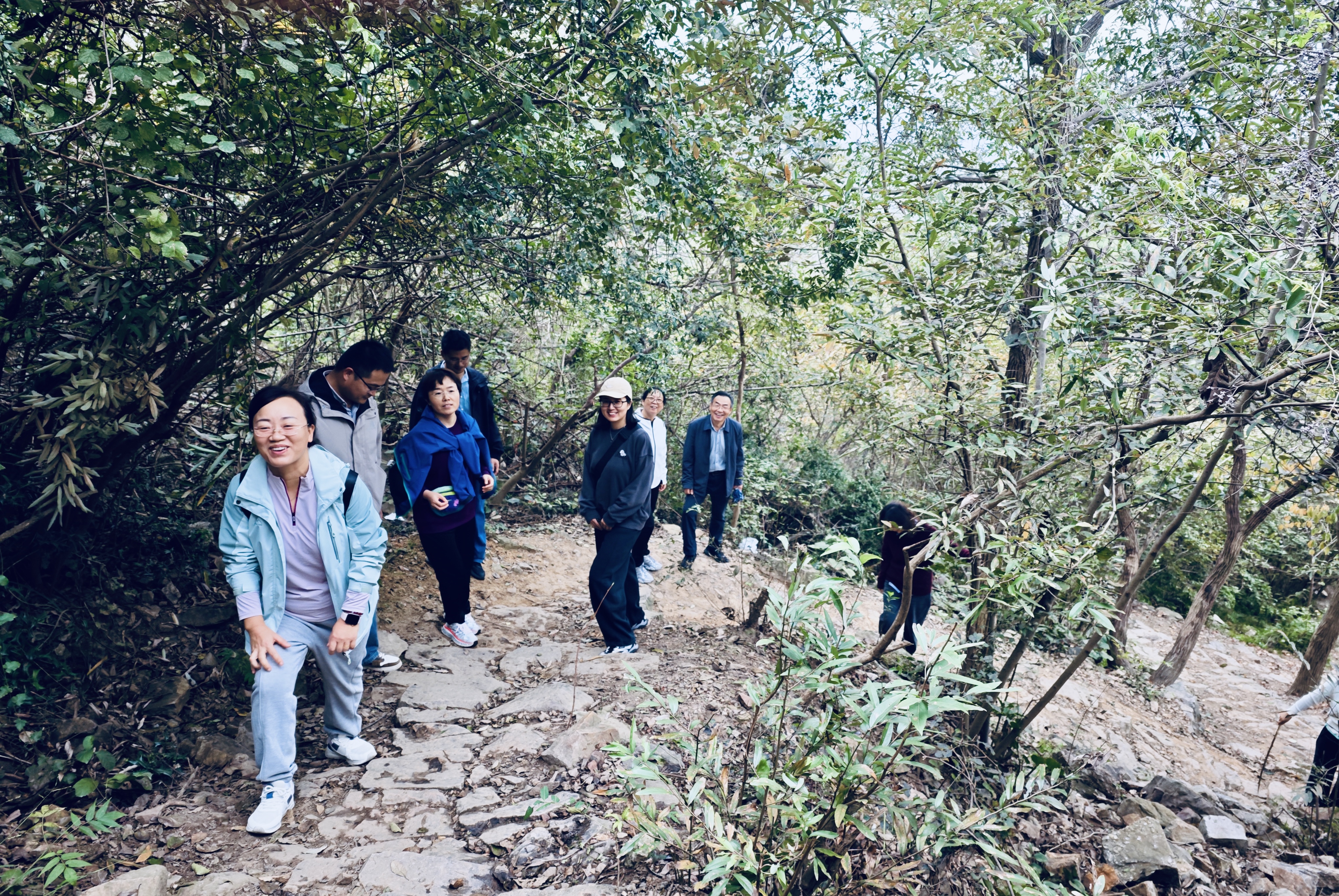 活动中,教职工们沿着蜿蜒的步道稳步前行。秋日的山林层林尽染,大家不时驻足欣赏漫山秋色,时而围坐交流 —— 从教学科研聊到生活趣事,从学院发展谈到个人成长,话题不断延伸,欢声笑语在林间久久回荡轻松愉悦的氛围让彼此的距离悄然拉近,团队的凝聚力在不知不觉中愈发浓厚。