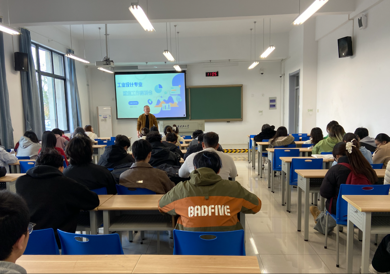 为进一步推动工业设计专业毕业生高质量就业,11月11日上午,浪live 在经世楼110教室召开就业工作专题座谈会。学院党委副书记谭海波、工业设计系主任刘李明及2026届工业设计专业毕业生参加了本次会议。