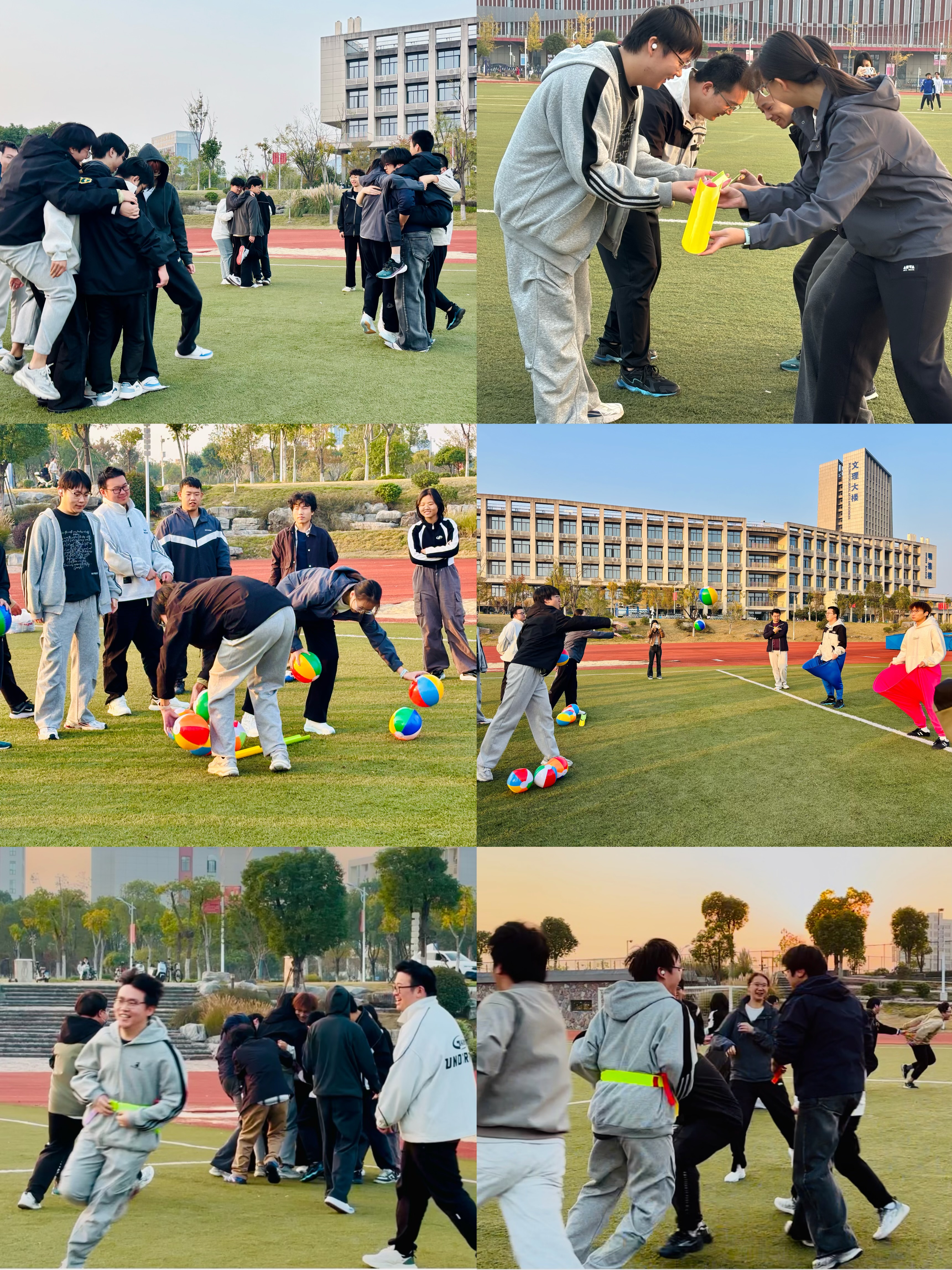 活动现场,趣味十足的游戏挑战依次展开,同学们在互动中收获成长。比如“同心破冰”协作挑战中,大家相互扶持、调整姿态、紧密相拥,站在不断对折、面积渐小的报纸上,在肢体接触与默契配合中打破隔阂;“珠行万里”环节,小组队员全程屏气凝神、精准传递,将乒乓球运输到终点,不仅锻炼了专注力,更诠释了情绪平稳传递与团队支持的重要意义。奶奶裤投球游戏、揪尾巴大战游戏受到了现场同学的一致好评,欢呼声与笑声此起彼伏。同学们在操场上尽情追逐奔跑,灵活躲闪、果断出击,在释放情绪与压力的同时,也拉近了彼此的距离。
