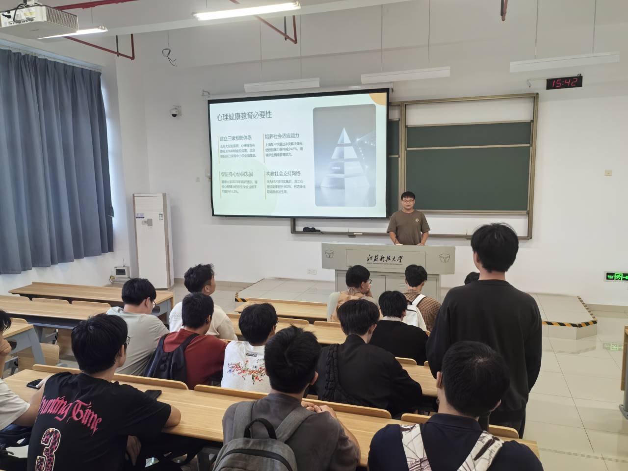 班会以心理健康教育必要性为起点,通过系统阐释“四级预防体系”,结合行业蓝皮书数据与工科生心理特质,针对工科生突出的心理困惑,聚焦大学生当前面临的问题深度破题:人际交往方面,提出“技术兴趣社群+ 跨专业协作”的社交拓展路径;学业压力调节引入“任务模块化拆解”与耶克斯 - 多德森定律;就业选择环节运用 SWOT - 生涯决策矩阵搭建理性框架;情感恋爱议题强调“自我同一性”的核心作用;网络成瘾治理则推出“数字边界设定法”等实操策略,全方位覆盖成长关键领域。通过典型案例剖析,运用ABC合理情绪疗法开展归因分析,帮助同学们掌握认知重构技巧。班会尾声,田子豪代表班级提出“三维心理支持计划”:个体层面开展“一对一心理树洞”服务,群体层面建立“学业-心理互助小组”,资源层面对接学院心理辅导站的专业支持,形成“自助-互助-他助”的闭环体系。