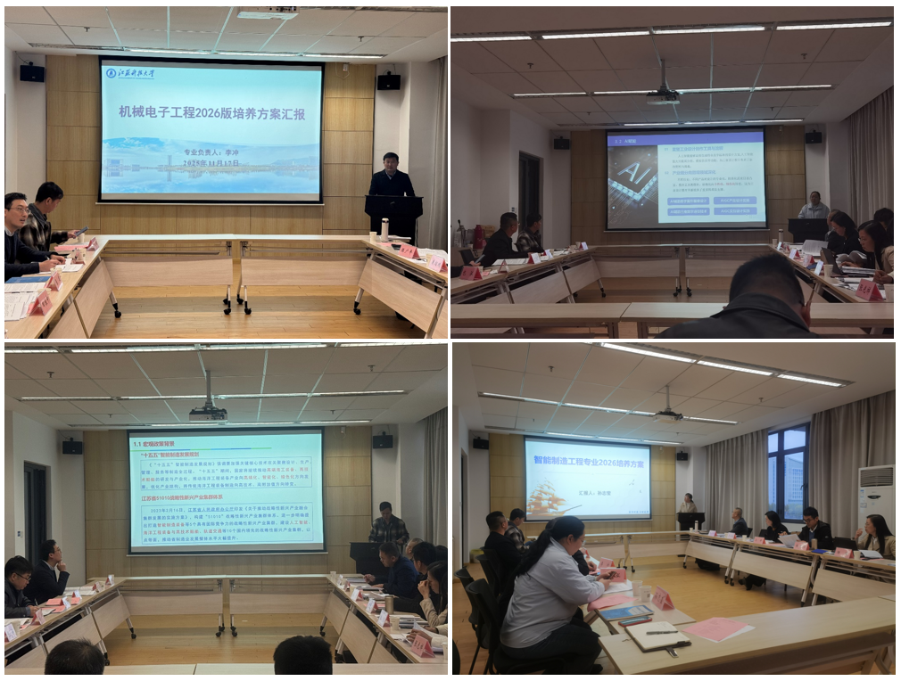 为进一步提升培养方案的科学性、前瞻性与可行性,提升人才培养质量,学院于11月17日召开2026版本科专业人才培养方案论证会。会议邀请江苏大学张忠强教授,南京林业大学马平教授,常州大学陆怡教授,江苏理工学院康绍鹏教授,淮阴工学院张光祥教授以及镇江中船现代发电设备有限公司陈广平高级工程师参与评审论证,教务处副处长田桂中、学院院长张建、副院长钟伟、专业负责人、系主任、骨干教师代表出席会议。