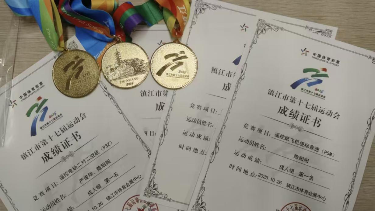 2025年10月26日,镇江市第十七届运动会群体部航空模型比赛圆满落幕,浪live 海空航行器协会的参赛队员们凭借精湛的技术和稳定的发挥,在竞争激烈的成人组比赛中脱颖而出,勇创佳绩。其中,在遥控电动二对二空战(P3Z)项目中荣获第一名;小队成员陈阳阳在遥控纸飞机绕标竞速(P5M)项目中夺得第一名;成员严俊翔在遥控纸飞机绕标竞速(P5M)比赛中获得第四名。以上各种优秀的成绩,充分展现了我校学子在科技体育领域的卓越风采和扎实功底。