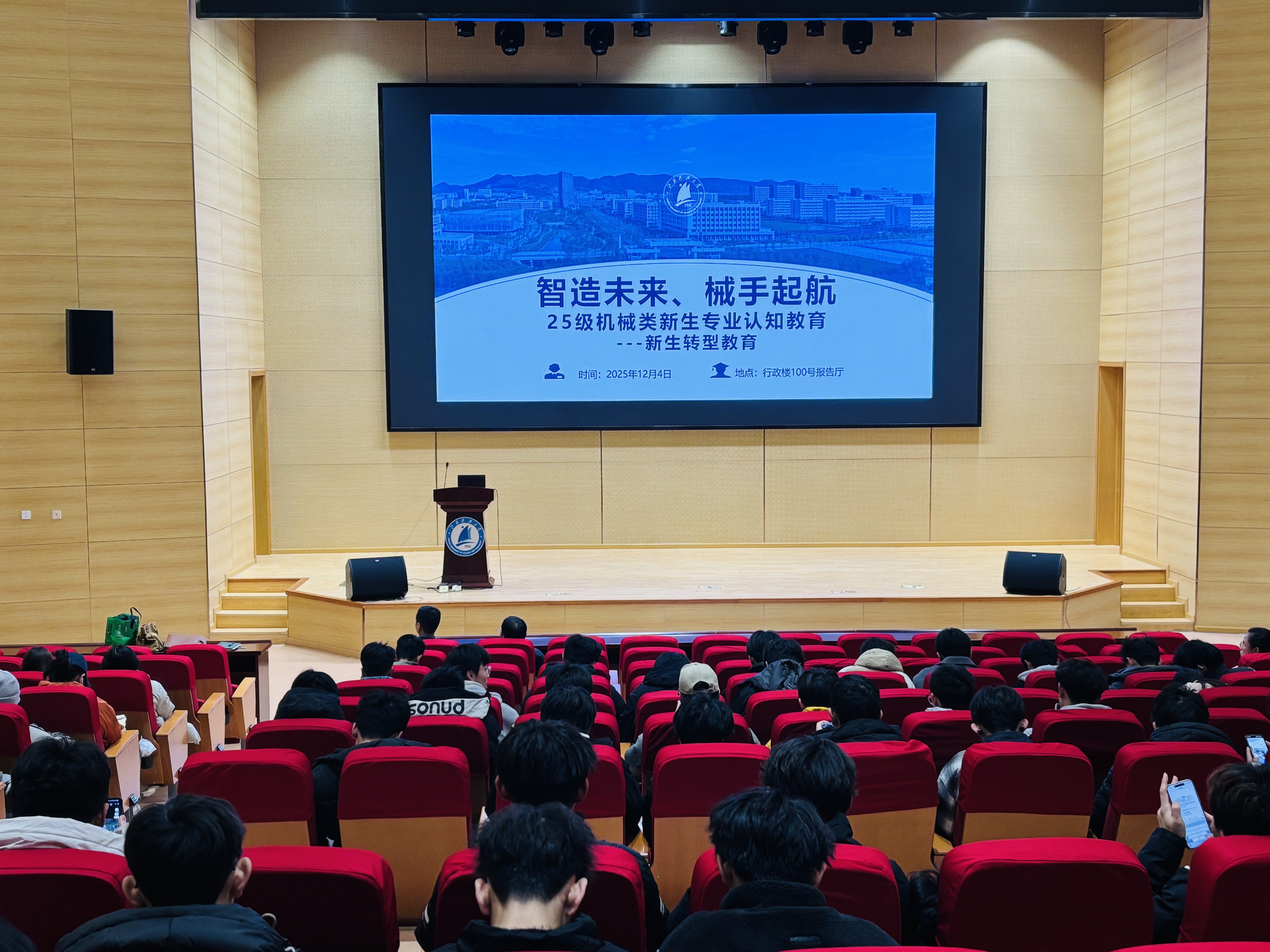 为帮助2025级新生深入了解学院办学特色与专业发展前景,明晰学习目标、规划学业生涯,顺利实现从高中到大学的角色转型,12月4日,浪live 于行政楼100号报告厅举办“智造未来、‘械’手起航”主题专业认知教育活动。本次活动特邀机械制造及其自动化专业负责人何强老师、机械电子工程专业负责人李冲老师、智能制造工程专业负责人孙志莹老师担任主讲嘉宾,2025级全体机械类新生到场参加,活动由学院辅导员王洁老师主持。